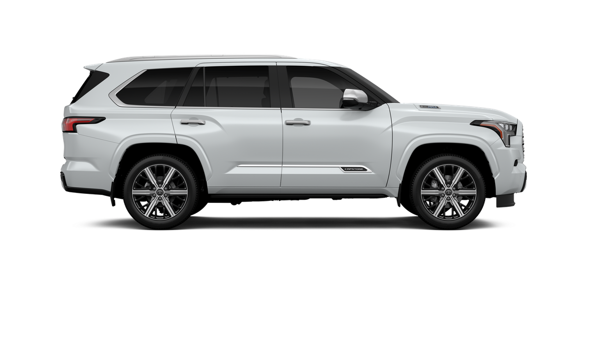 - Bright-chrome "SEQUOIA" rear door badge; chrome "CAPSTONE" door badge, garnish and window molding; color-keyed overfenders