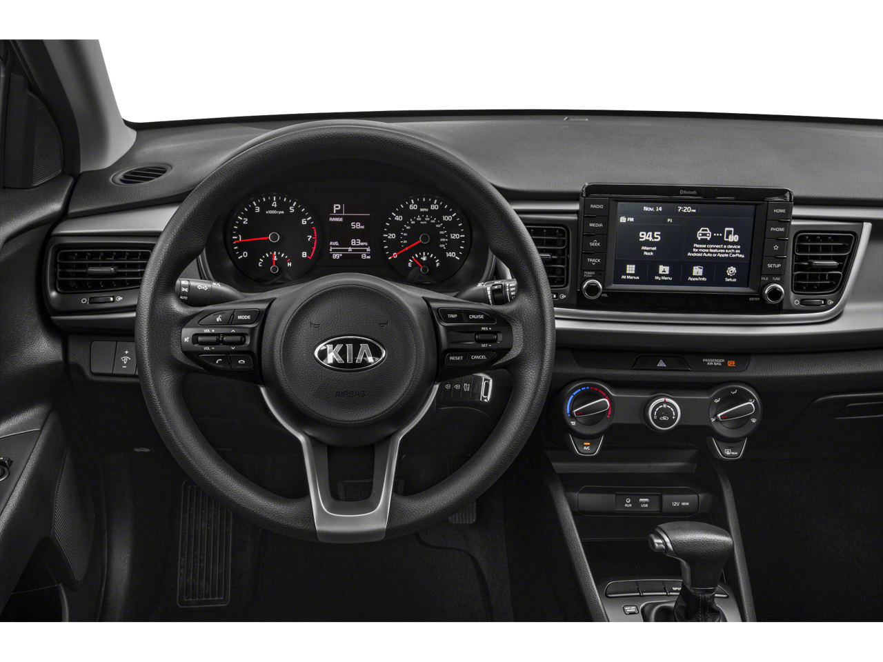 - Radio: UVO Play AM/FM/MP3 Audio System -inc: 6 speakers (4 speakers + tweeter speakers), 7" touch screen, Rear View Monitor (RVM), rear park assist system, USB/auxiliary input jack, USB charger, support for Apple CarPlay and Android Auto smartphone integration and steering wheel-mounted audio controls