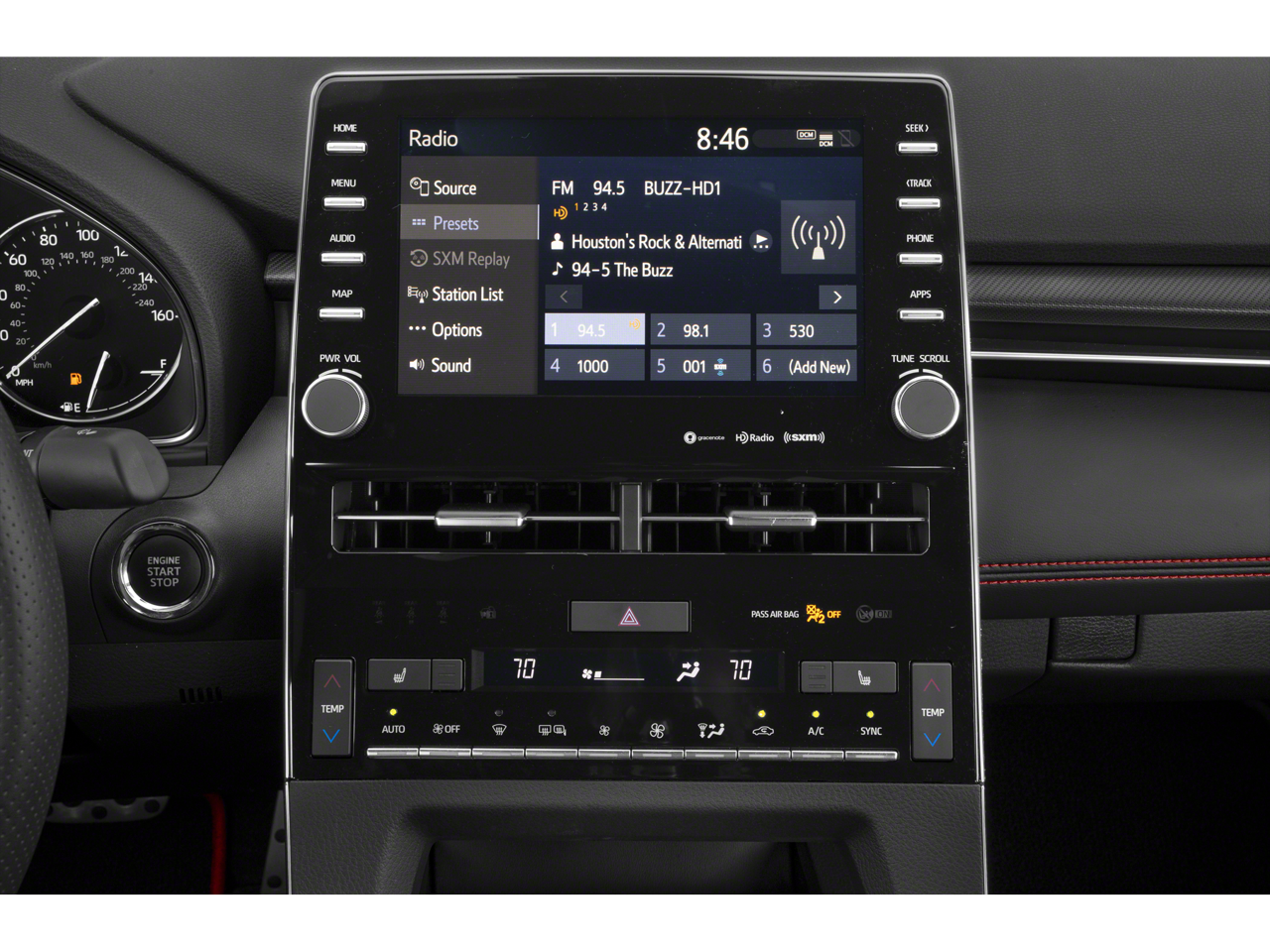 - Radio: Audio Plus -inc: 8 speakers, 9" touch screen, audio jack, USB 2.0 port w/iPod connectivity and control, Bluetooth® wireless technology w/hands-free phone capability, music streaming and voice recognition, Amazon Alexa in-car app, Apple CarPlay, Scout GPS Link w/3-year trial, Siri Eyes Free, HD Radio, Entune App Suite, SiriusXM satellite radio w/3-month all-access trial, Entune 3.0 Toyota Connected Services, Safety Connect w/3-year trial, Service Connect w/3-year trial, Remote Connect w/6-month trial and Wi-Fi Connect up to 2GB w/6-month trial